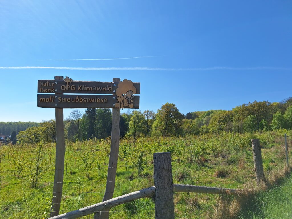 Bei noch recht kaltem Wetter machten sich am 23.04.2026 einige Schülerinnen und Schüler des 7. Jahrgangs und sowie ein paar Lehrkräfte nach einem kurzen theoretischen Teil zu grünen Berufen im Garten- und Landschaftsbau, sowie der Forstwirtschaft auf den Weg zum OPG Klimawald. Als wir dort ankamen, legten wir zunächst eine kurze Pause ein und genossen unser Frühstück, während die Sonne heraus kam. Bei bestem Wetter trafen wir Corinna Hägermann vom Bauhof, die kurz ihren eigenen Beruf vorstellte und dann mit uns in den Klimawald ging und uns zeigte, wie die Disteln zwischen Bäumen am besten niederzutreten sind, damit die Bäume sich möglichst optimal entwickeln können.